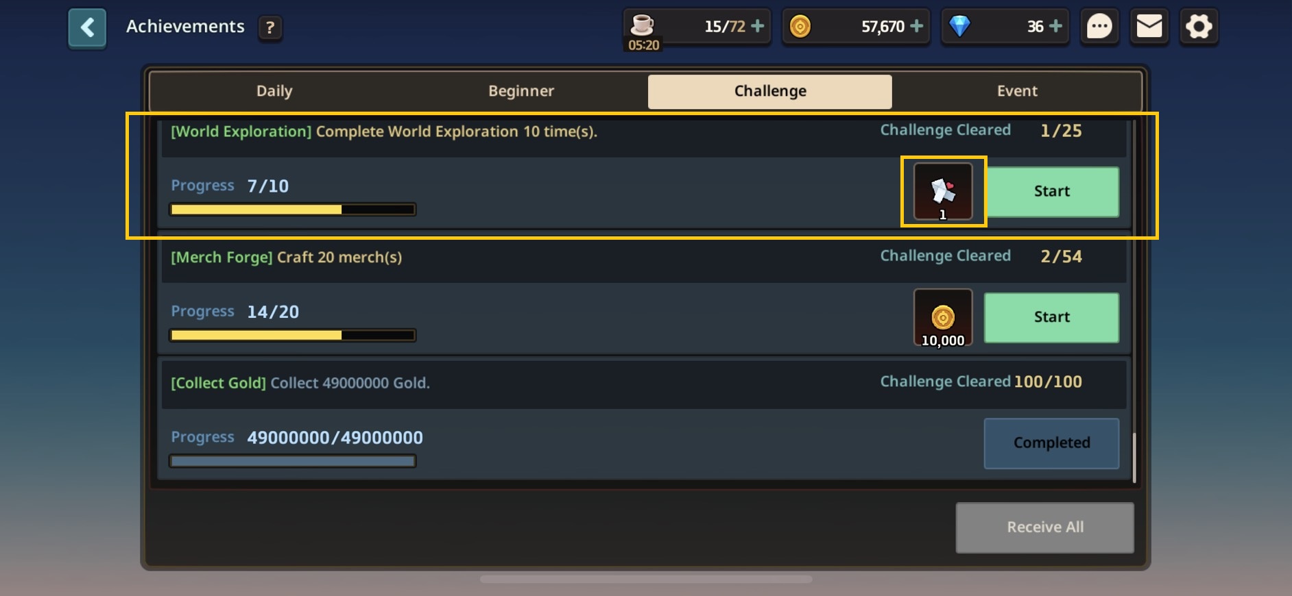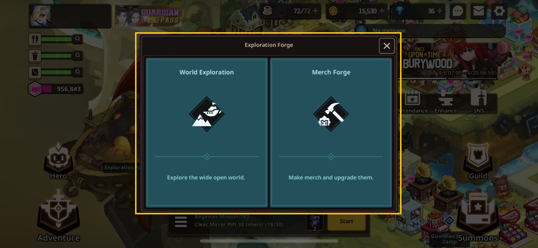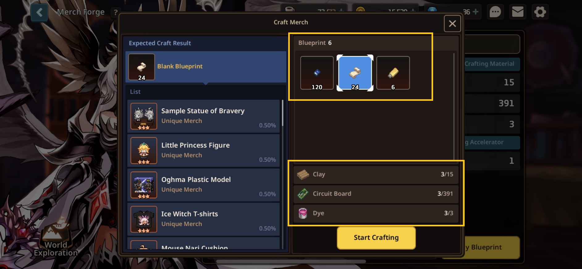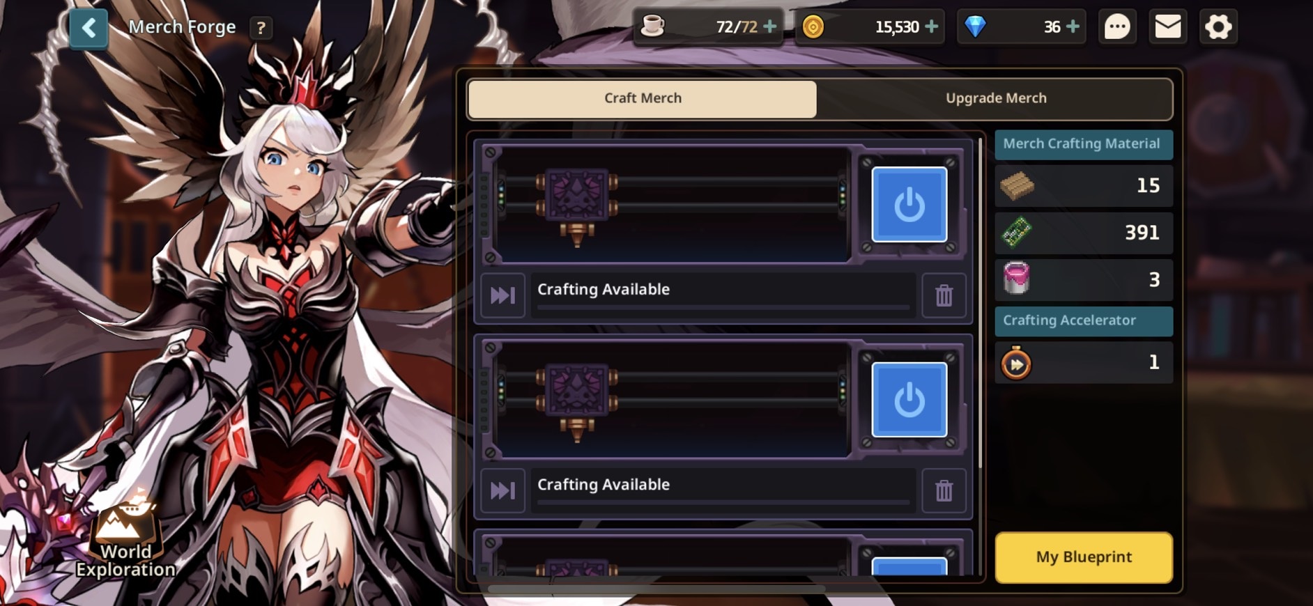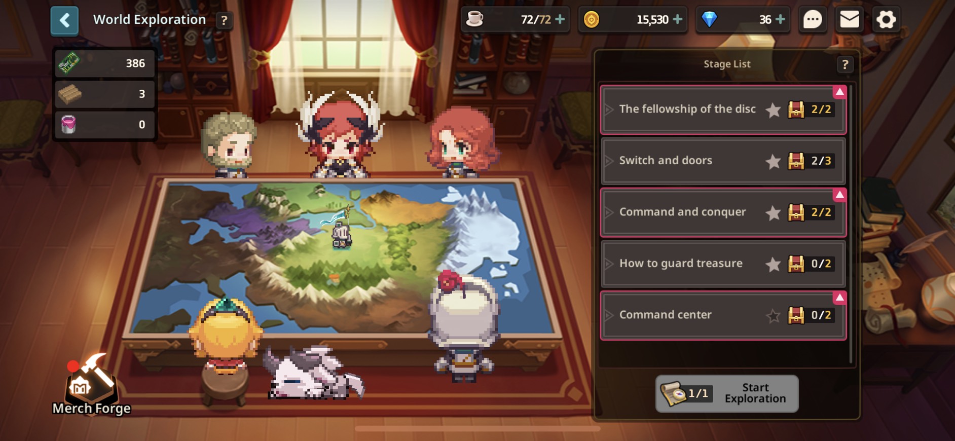 Tap on Exploration Forge to choose between World Exploration to collect materials used for crafting merch or Merch Forge where you can craft the merch you desire.
