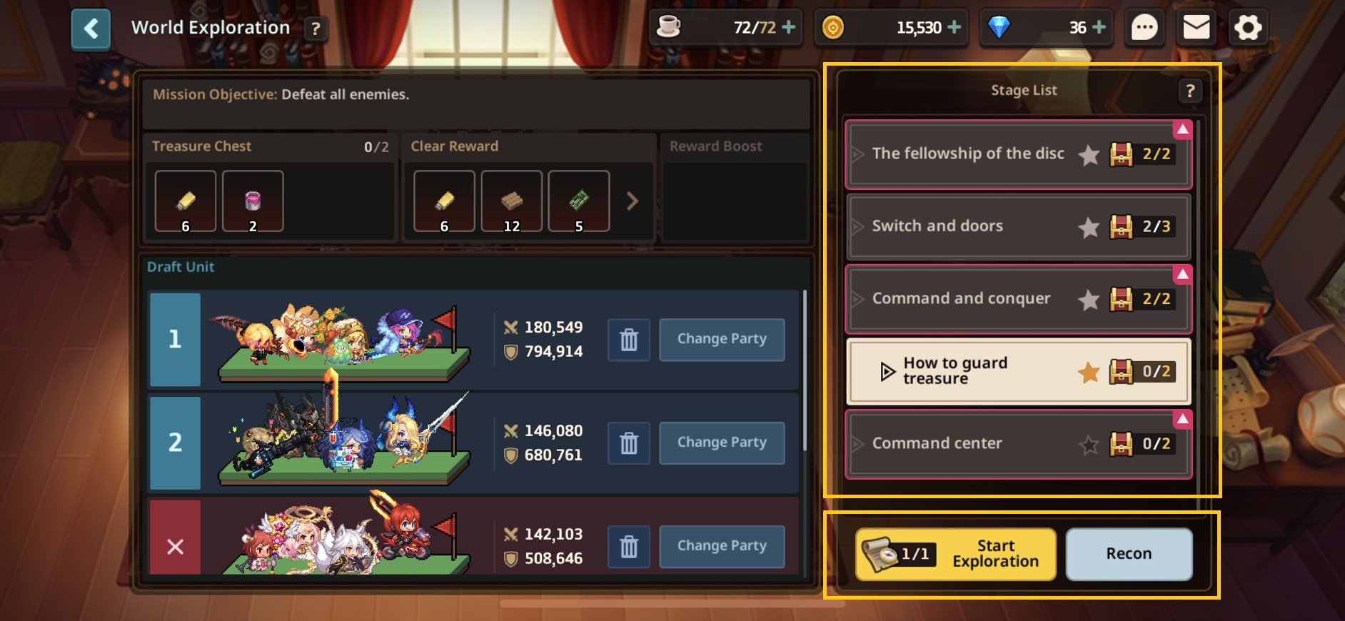 When you Start Exploration on a stage, you will engage in a turn-based game where you may move your units in a Player Phase.