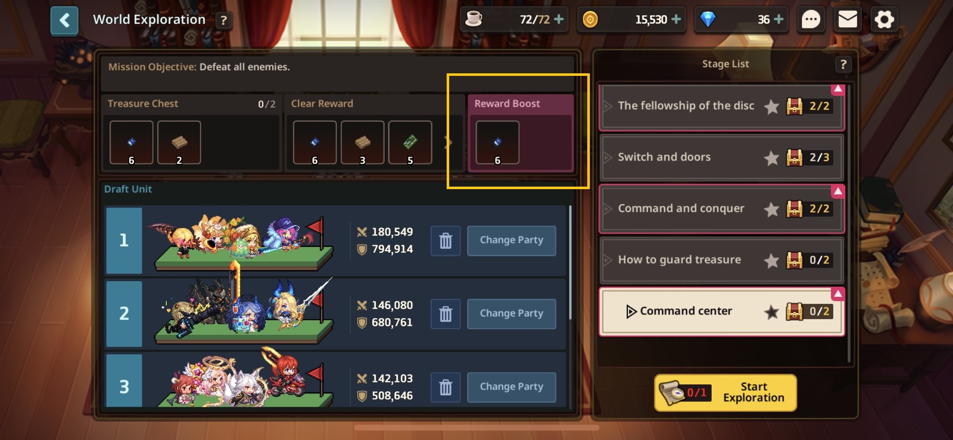 Exploration Stages give a different Reward Boost depending on the day of the week. Note conditions to clear each stage may differ.